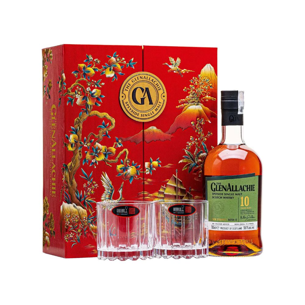 Rượu GlenAllachie 10 năm – Hộp quà Tết 2026 là phiên bản phát hành giới hạn cho dịp tết Nguyên Đán Bính Ngọ. Set quà gồm 1 chai Single Malt Scotch Whisky 10 năm tuổi của nhà GlenAllachie, 02 ly pha lê Riedel cao cấp cùng hộp đựng và giỏ xách màu đỏ đầy may mắn với những họa tiết bông hoa, chim hạc, thuyền buồm ngụ ý cầu chúc thịnh vượng và may mắn cho gia chủ.