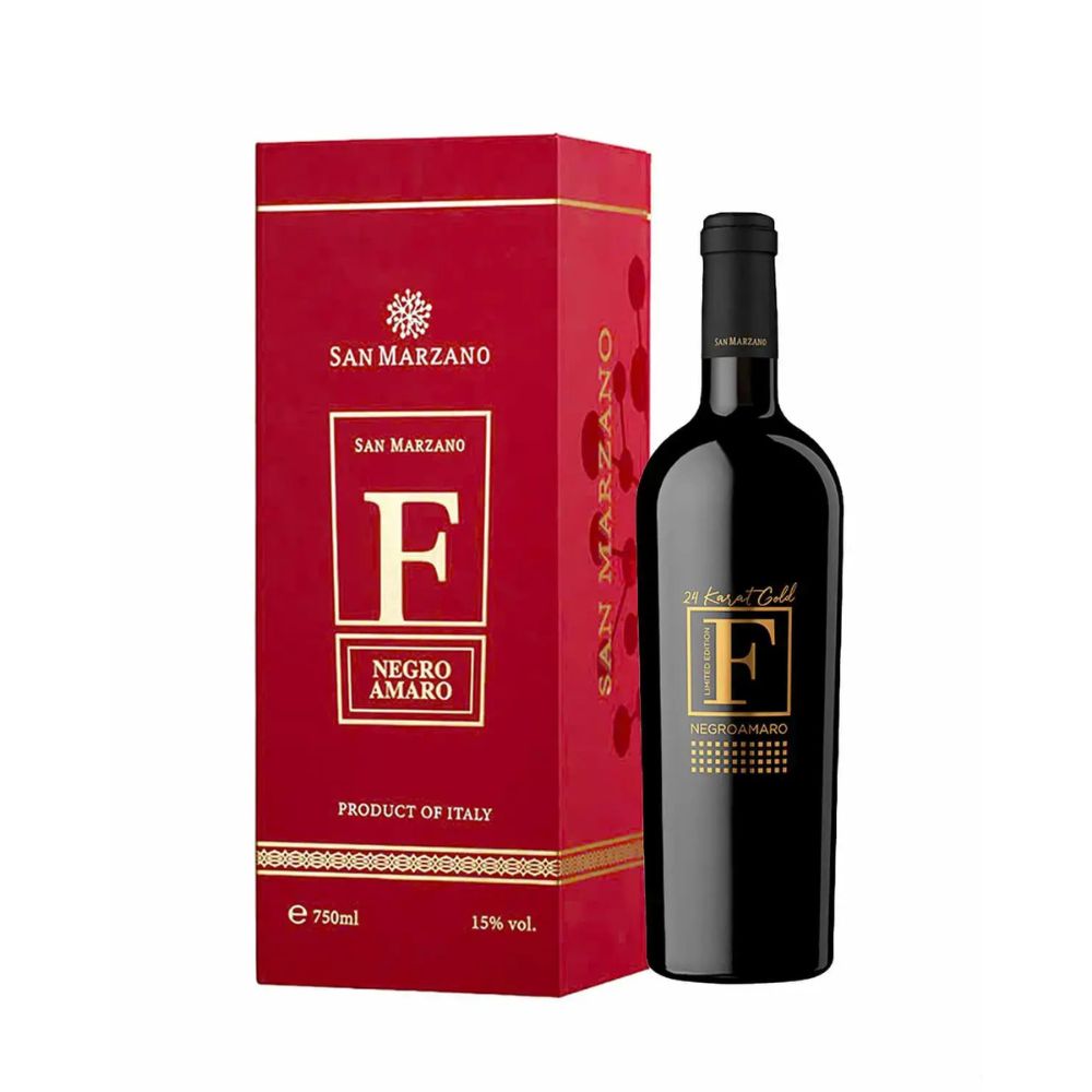 Rượu vang F Gold 24 Karat Limited Edition mang trong mình tinh hoa của giống nho Negroamaro từ những điền trang tốt nhất vùng Puglia, miền Nam Ý.